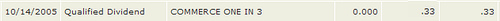 On my father's 64th birthday, a painful legacy was put to rest. This is the final liquidation dividend from the first and worst stock trade of my life: Commerce One. Yes, that's right, a whopping $.33 -- just short of a phone call. Now really, this investment was done long ago, but I've kept it all these years as a reminder. I held till the bitter end. I'm hoping that in time its lessons will eventually absolve my loss, and for this reason, I share them with you.